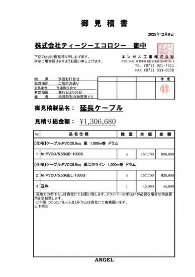 【株式会社ティージーエコロジー様】延長ケーブルセット 5.5sq 黒と黒に白ライン
